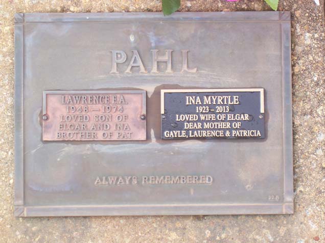 Headstone for Laurencee. R. PAHL